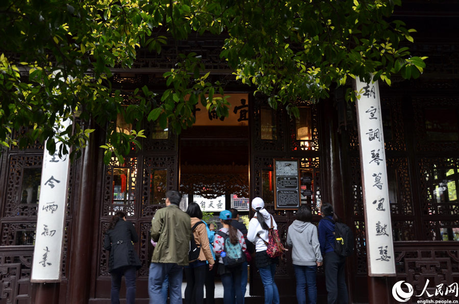 Tourists enjoy the scenery of Geyuan Garden in Yangzhou, east China's Jiangsu Province, April 6, 2014. (People's Daily Online/Du Mingming)