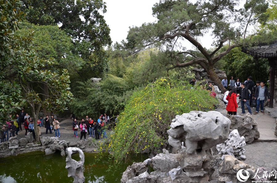 Tourists enjoy the scenery of Geyuan Garden in Yangzhou, east China's Jiangsu Province, April 6, 2014. (People's Daily Online/Du Mingming)