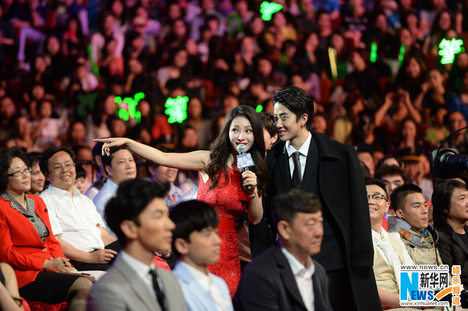 Photo taken on April 13, 2014 shows that celebrities pose for a photo during Top Chinese Music award in Shenzhen, China.[Photo/xinhua]