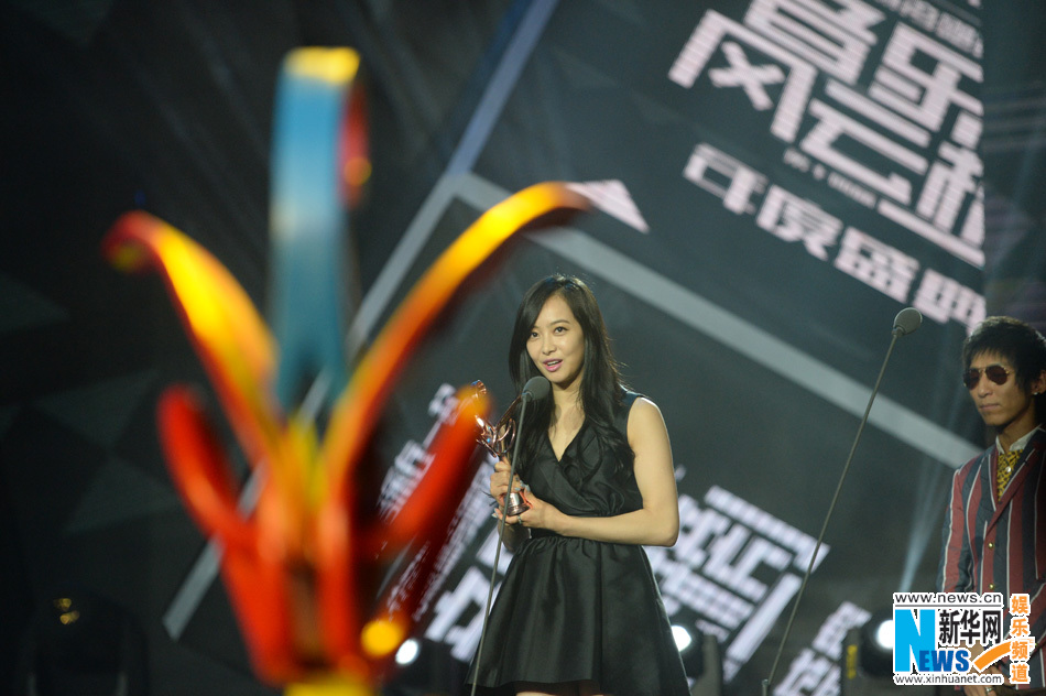 Photo taken on April 13, 2014 shows that celebrities pose for a photo during Top Chinese Music award in Shenzhen, China.[Photo/xinhua]