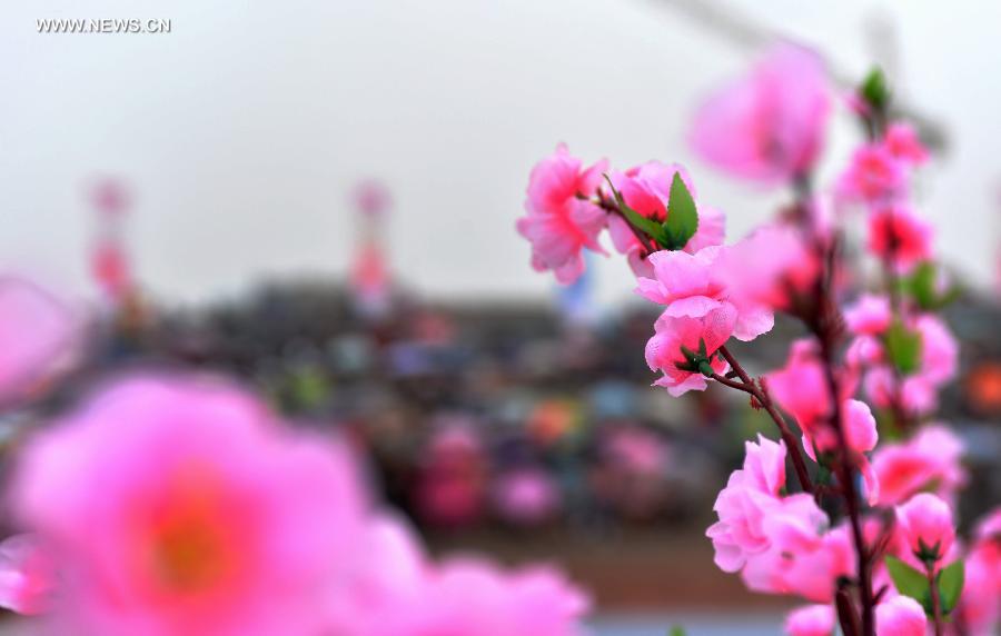Photo taken on April 20, 2014 shows peach blossom at the 31st peach blossom tourism festival in Lanzhou, capital of northwest China's Gansu Province. The festival, which kicked off on the day of Guyu (Grain Rain), one of the 24 solar terms created by ancient Chinese to carry out agricultural activities according to position of sun at the zodiacal circle, will last until October. (Xinhua/Chen Bin)