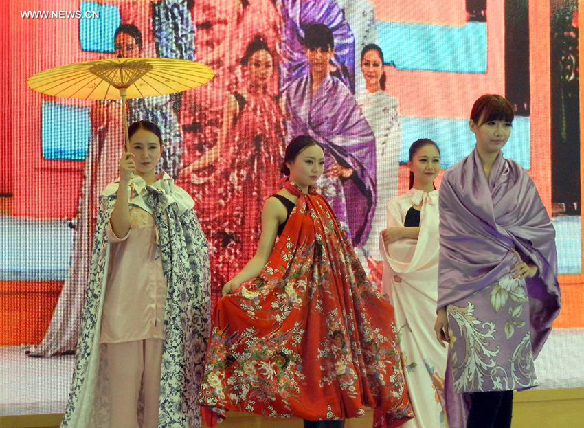 Models present bed sheets during a bed sheet show in Suzhou, east China's Jiangsu Province, April 19, 2014. (Xinhua/Wang Jiankang)