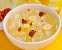Jardinière of saozi noodles features five colors: red from carrots, green from garlic bolts, black from wood ear fungus, yellow from eggs and white from beancurd. Black and white signifies distinct attitudes towards what’s right and what’s wrong. Yellow stands for riches and honor. Red carries wishes for a better life, and green represents vitality. All the ingredients are diced and deep-fried. Their five colors express people’s wishes for a better life.