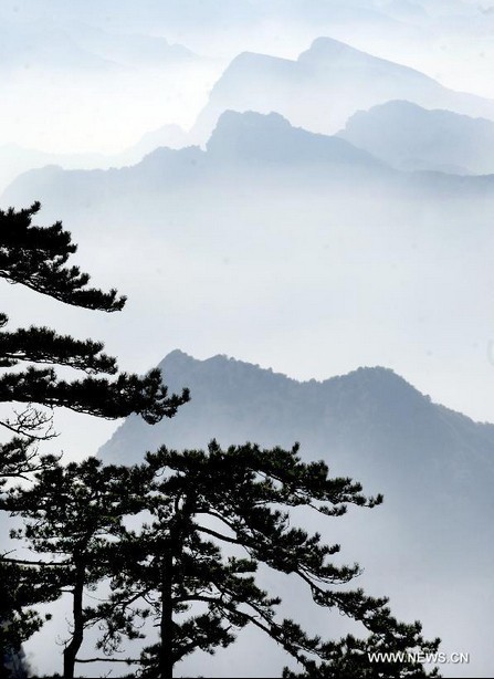Photo taken on April 22, 2014 shows the view of Huashan Mountain, a famous tourism destination in northwest China's Shaanxi Province. As spring comes, the mountain is expected to see more tourists.[Photo/Xinhua/Tao Ming]