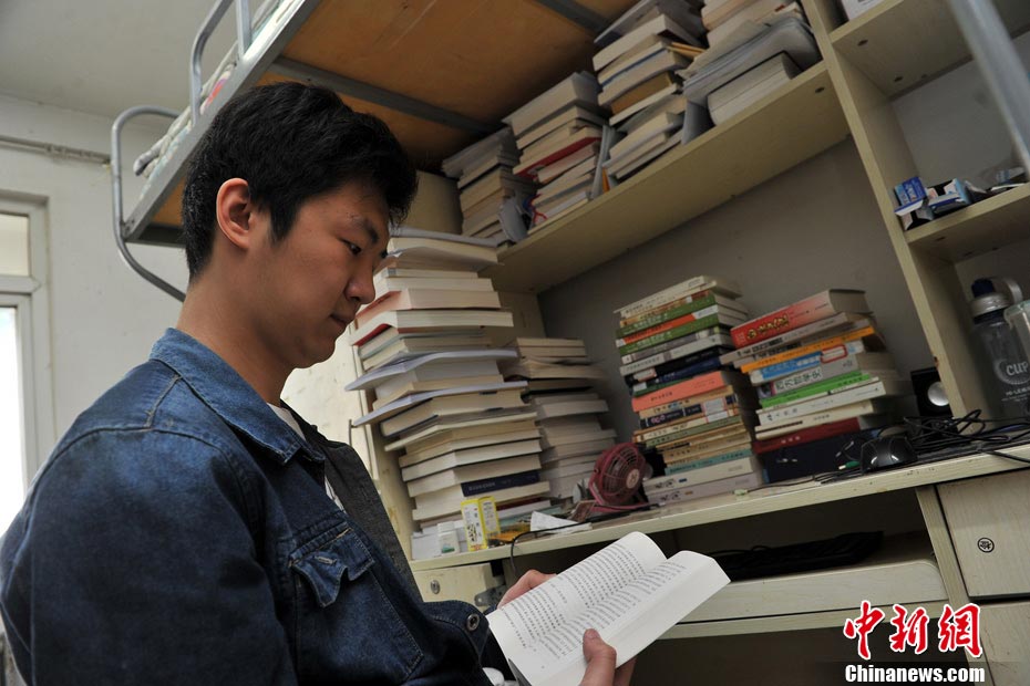 Zhang, a postgraduate student in Philosophy Department, reads two hours a day on average. He reads three books intensively per month. He spends half of his reading time on paper books and half on digital ones. He said paper books could be freely highlighted or underlined while digital ones were not that convenient. (Chinanews.com/Jin Shuo)