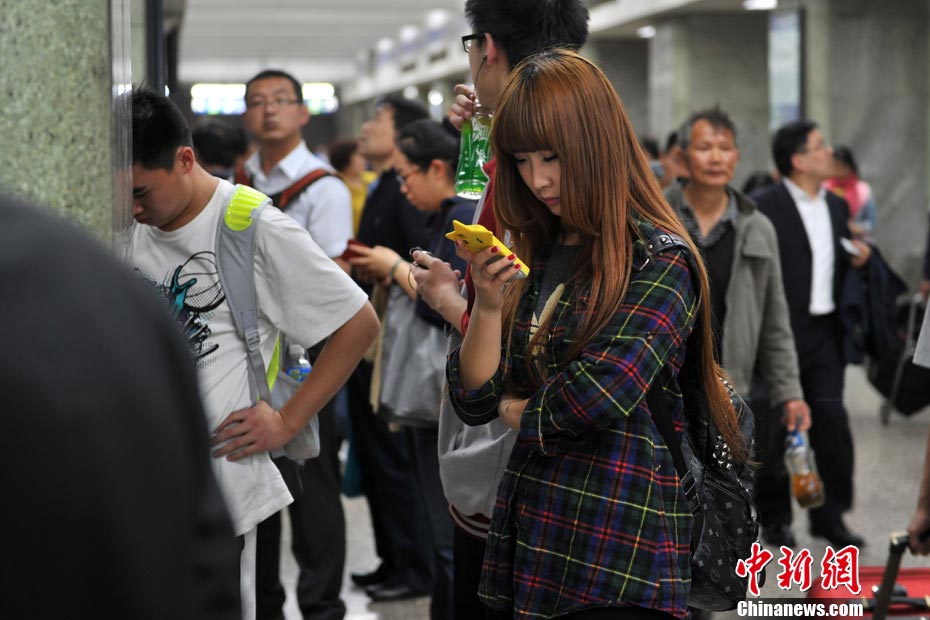 Hu, a makeup artist, plays with her phone when waiting for the subway. She said she had not read a book for a long time. She usually uses mobile phone to get information, and apps like Weibo and WeChat are convenient enough. (Chinanews.com/Jin Shuo)