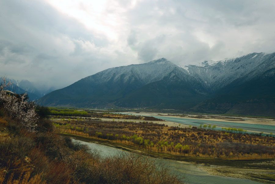 In Nyingchi, you can enjoy the view of Tibet's four seasons all at once. Down in the valley, when the willows start budding, the withered grass on the river bank still preserves the autumn yellow. While the peach flowers are still in full bloom at the mountain foot, up on the mountains, the snow has yet to start melting. [Photo: CRIENLGISH.com/ Xia Jixuan]