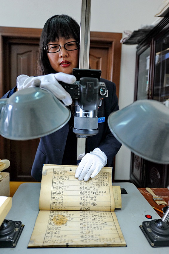 Hong Sa takes photos for the fixed pages to preserve the documents.