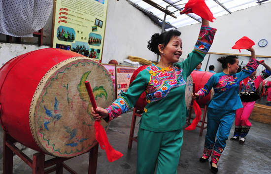 Miao drum dancing, whose origins are in sacrificial rituals, was traditionally performed in Guizhou, Hunan and other provinces with a high Miao population. But with modern civilization wiping out old norms and customs en masse, it has lost much of its luster among the younger generations.