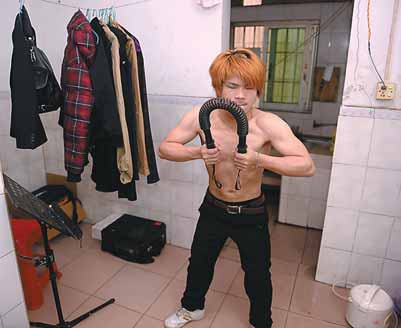 Good muscle tone is needed for his performances, so Yu often exercises at his rented apartment. Photos by Xia Shiyan / for China Daily