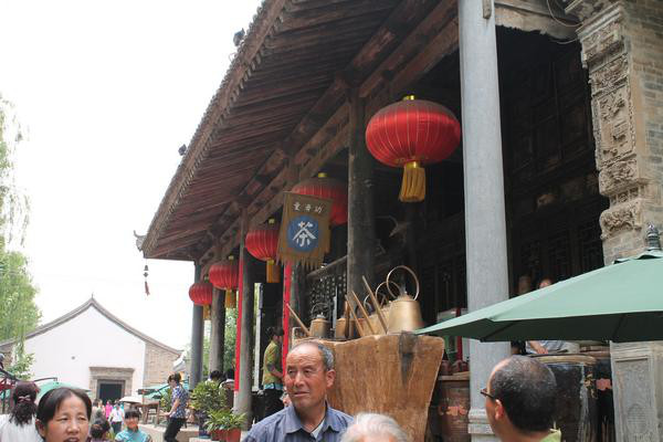 A rather more “no-frills” teahouse is Wang’s behind Tongjigong. It is actually no more than a large, thatched shed. Its folksy environment reminded me of where the heroes gather in the famous novel Outlaws of the Marsh. The young waitresses are dressed in white suits and green aprons. A loudspeaker broadcasts ballads and short stories in Guanzhong dialect. The dialect sounds crisp, creating a convivial atmosphere.