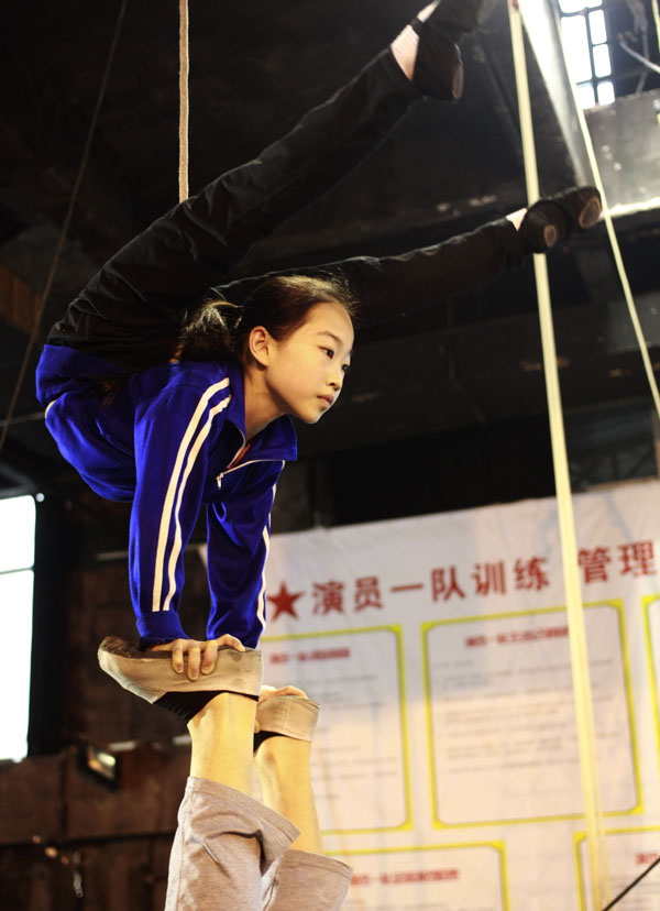 Fledgling acrobats of the Guangzhou Acrobatic Troupe repeat the same routines day after day. Photos by Zou Zhongpin/China Daily