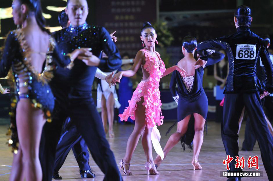 The 12th dancesport championship and the national dancesport invitation championship were held in Duyun, southwestern China's Guizhou province from May 10 to May 11. The event, sponsored by the province's sports lottery, attracted more than 3,000 dance enthusiasts from different countries including China, Italy, Russia and France. (CNS Photo)