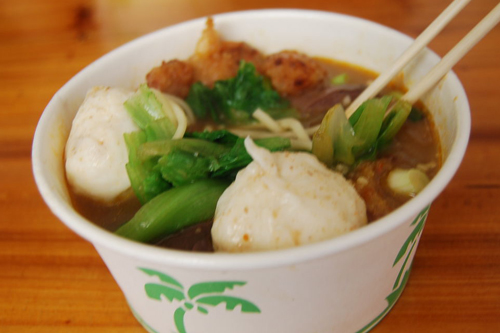 This is a very common dish. The specialness of Shacha noodle is that its soup is made by Shacha sauce and pork or chicken bones soup , you can add any food materials you like in the noodle like pig's liver, pig's kidney, duck's tendon, and dried tofu etc.