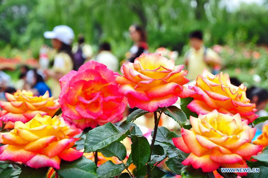 Tourists view Chinese roses during the Chinese rose cultural festival at the Beijing Botanical Garden in Beijing, capital of China, May 15, 2014. (Xinhua/Ma Zhiyu)