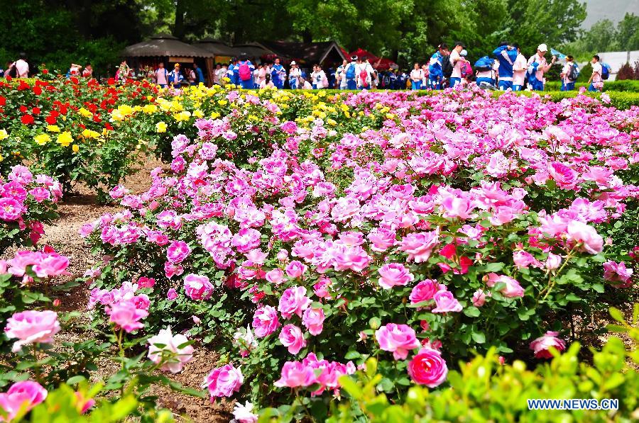Tourists view Chinese roses during the Chinese rose cultural festival at the Beijing Botanical Garden in Beijing, capital of China, May 15, 2014. (Xinhua/Ma Zhiyu)