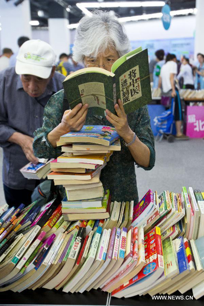 Readers attend the fourth Beijing Book Exchange Fair held at the Capital Library of China in Beijing, capital of China, May 23, 2014. The fourth Beijing Book Exchange Fair opened Friday in Beijing. Over 10,000 used books and magazines are available for swaps. (Xinhua/Zhao Bing)