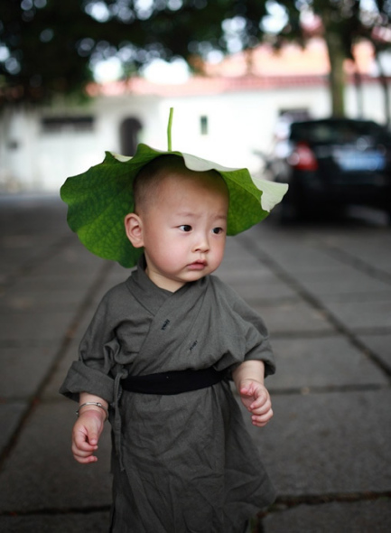 A photo posted on May 25, 2014 shows a little boy dressed as a monk standing in a temple in Fuzhou, capital of southeast China's Fujian province. A group of photos depicting the cute "little monk" got nearly 10,000 reposts over one night. [Photo: China.com.cn]