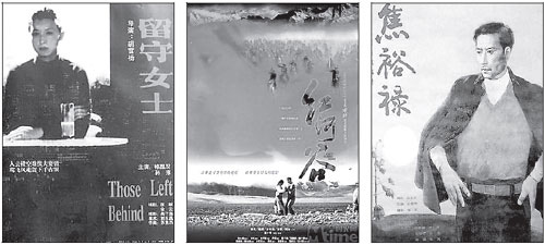 The posters of Chinese films, (from left to right) Those Left Behind, Red River Valley and Jiao Yulu, that Wu recommends.