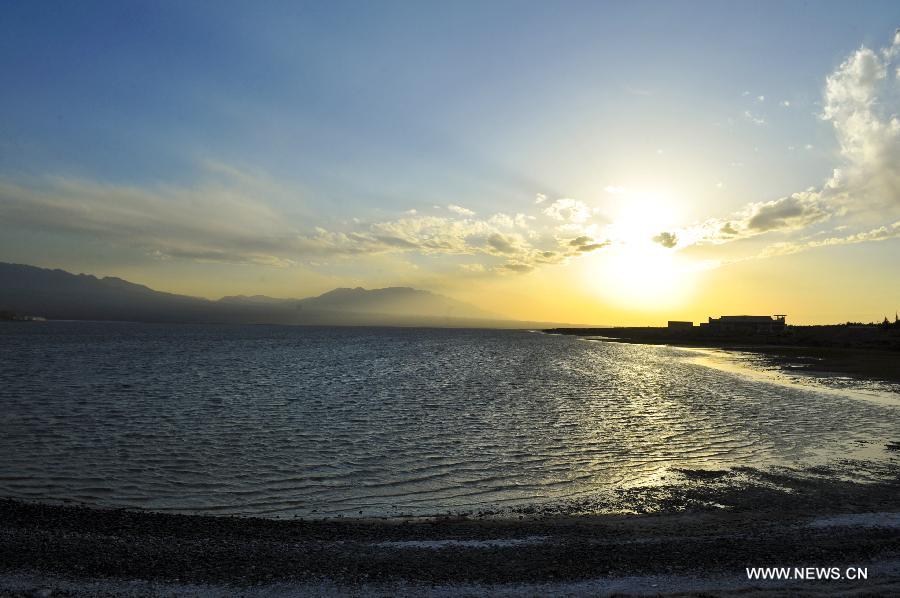 Photo taken on June 6, 2014 shows the sunset scenery of the Salt Lake, which is 76 kilometers away from Urumqi, capital of northwest China's Xinjiang Uygur Autonomous Region. (Xinhua/Zhao Ge)