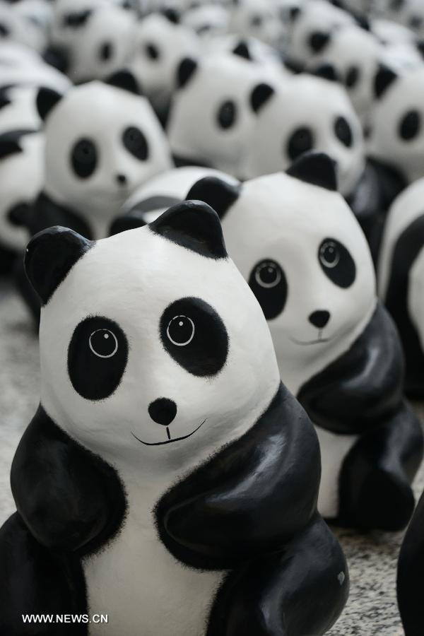 Paper pandas are seen at Hong Kong International Airport in Hong Kong, south China, June 9, 2014. The 1600 paper pandas would be displayed at some view spots in Hong Kong from June 9 to 21. (Xinhua/Liu Yun)