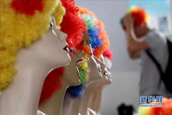 China-made wigs have become a great catch of worldwide soccer fans and a best-seller in the Yiwu International Trade City. [Xinhua]