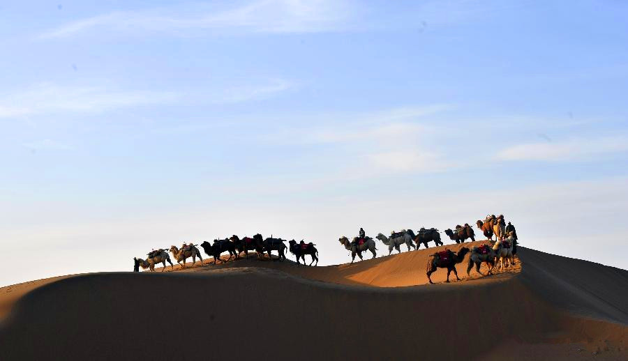 Shapotou Desert is located on the southern edge of the Tengger Desert. It is the site of the world-renowned Shapotou Desert Experimental Research Station. There is also singing sand in Shapotou. Thousands of domestic tourists descend upon Shapotou each year to enjoy the natural scenery and partake in various activities on and around the 100-metre high dunes. It has a width of 2,000 meters and a height of 100 meters with an inclination of 60 degrees. When standing at the foot of the sand hills, you can see what looks like a waterfall, but is actually sand.