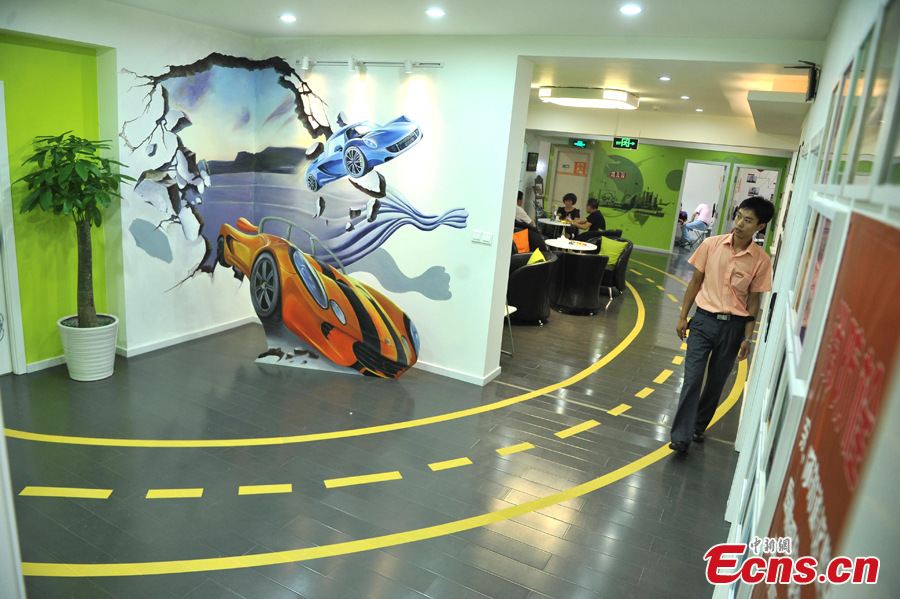 A man walks in an automotive-themed tea house in China's Chongqing on Thursday, June 12, 2014. The unique decor aims to bring a little fun and flair to the tea house's business presentation. (Photo/Chen Chao)
