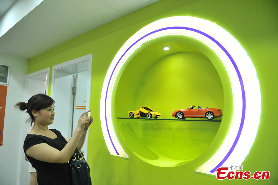 A woman takes a picture in an automotive-themed tea house in China's Chongqing on Thursday, June 12, 2014. The unique decor aims to bring a little fun and flair to the tea house's business presentation. (Photo/Chen Chao)