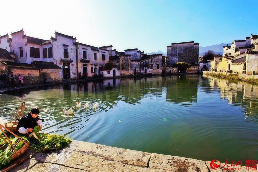 Hongcun Village is located in Yixian County at the foot of the southwestern slope of Mt. Huangshan, Anhui Province. With morning mist, stone bridges, white walls, water lily ponds and hills, it has been described as a village out of a traditional Chinese ink painting. Besides halls, pavilions and temples, the village has 160 ancient residences. These architectures, with fantastic stone carvings, were built during the Ming and Qing dynasties and widely regarded as the best historic sites in China. (Photo source: China.org.cn/Chinapic)