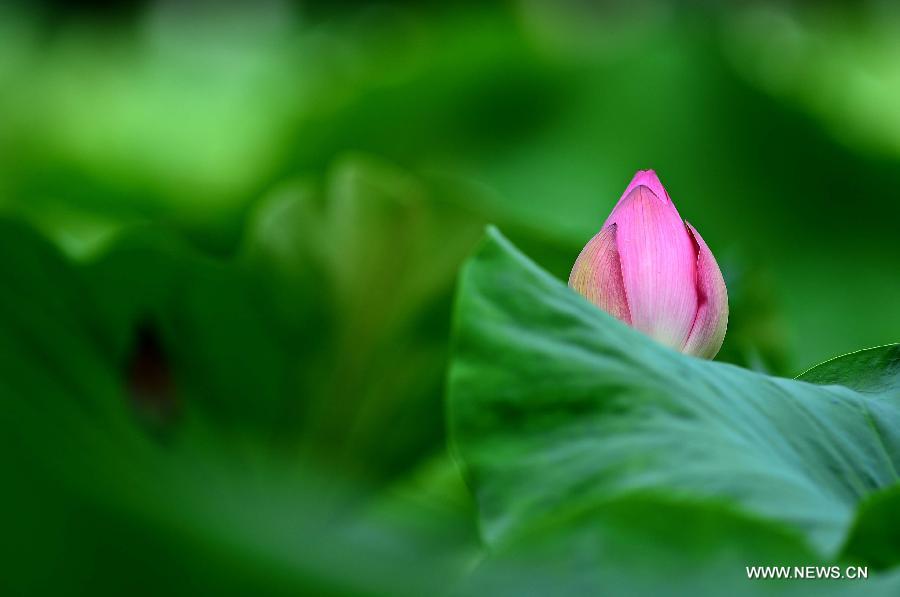 Photo taken on June 18, 2014 shows a budding louts flower at Quancheng Park in Jinan, capital of east China's Shandong Province. (Xinhua/Guo Xulei)
