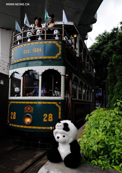 Paper pandas travel on a tram in Hong Kong, south China, June 20, 2014. A total of 1,600 paper pandas, the work of French artist Paulo Grangeon, were displayed in Hong Kong. (Xinhua/Lo Ping Fai)