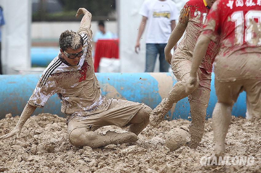 The 2014 mud football world cup is held in Beijing, which attracts 300 competitors. The champion team may have the chance to participate in the finals in Britain. (Qianlong/Qi Lianmin)