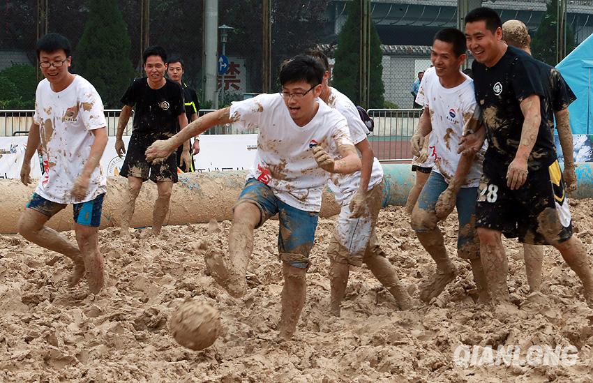 The 2014 mud football world cup is held in Beijing, which attracts 300 competitors. The champion team may have the chance to participate in the finals in Britain. (Qianlong/Qi Lianmin)