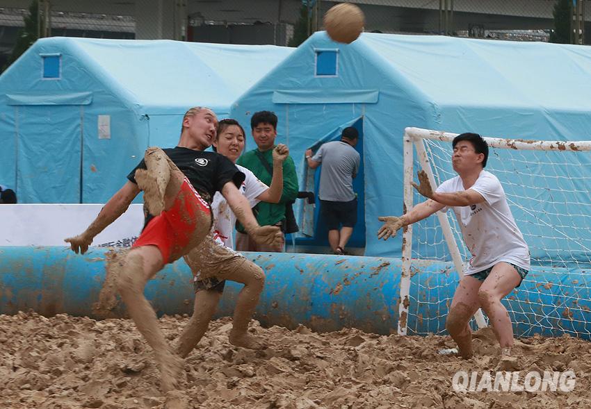 The 2014 mud football world cup is held in Beijing, which attracts 300 competitors. The champion team may have the chance to participate in the finals in Britain. (Qianlong/Qi Lianmin)