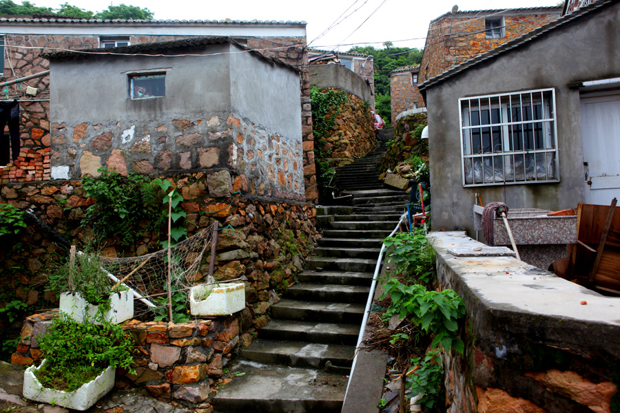A staircase climbs up through the abodes of Hua Gua Gu Cun fishing village. Photo taken June 19, 2014. [Photo: CRIENGLISH.com/William Wang]