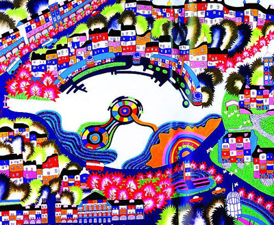 However as life evolves with development, farmer painting evolved along with it. “Basically, farmer painting today is a traditional craft, but with modern artistic sentiments drawn on canvas instead of the walls above the stoves where it first began,” says Zhu.