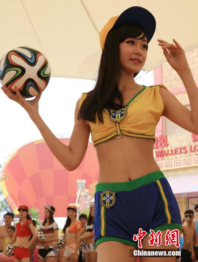 A show with "World Cup" theme is staged in the Playa Maya Water Park in Shanghai on June 29, 2014. Hot show performed by football babies and Samba dancers attracted a lot of visitors. (Photo/CNS)