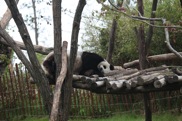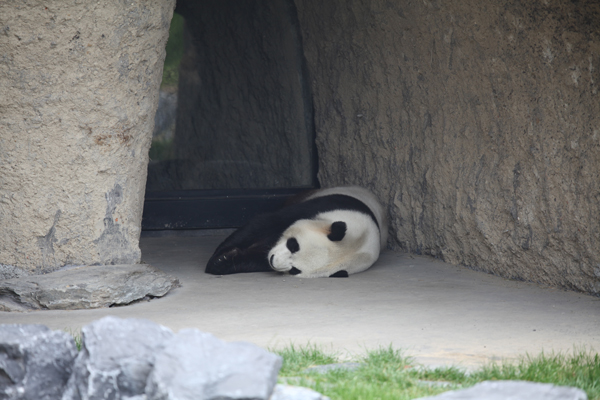 Giant panda Hao Hao rests Belgium's Pairi Daiza Zoo. |