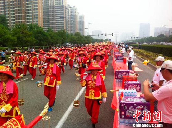 Kunshan, Jiangsu province, thousands of devotees celebrate the return of the statue of Mazu. In 2010, the statue was given to Kunshan's Huiju Tian Hou Temple by another temple in Taiwan. 4 days ago, it toured back to Taiwan and now it's come home.