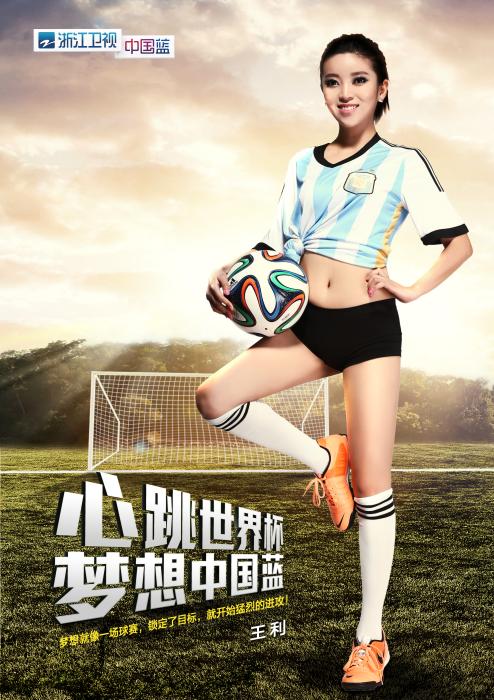 The female reporters from Zhejiang TV dress up in soccer uniforms of the national teams participating in the Brazil FIFA World Cup and pose for photos to celebrate the global soccer tournament. (Photo/CNS)