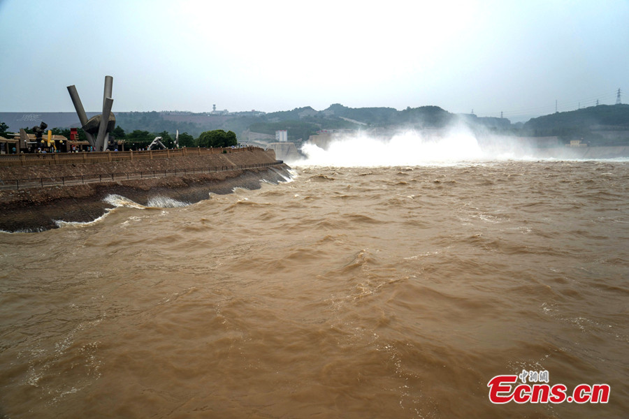 The 2014 Yellow River Xiaolangdi Waterfall-Watching Festival kicks off at the Xiaolangdi reservoir in Luoyang of central China's Henan province on June 30, 2014. The festival will last till July 5. [Photo: China News Service / Cheng Hao]