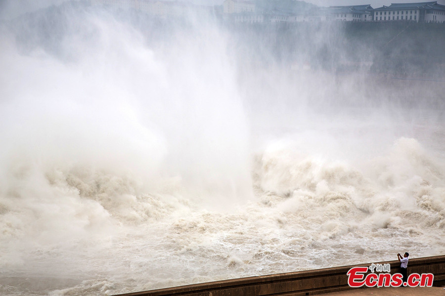 The 2014 Yellow River Xiaolangdi Waterfall-Watching Festival kicks off at the Xiaolangdi reservoir in Luoyang of central China's Henan province on June 30, 2014. The festival will last till July 5. [Photo: China News Service / Cheng Hao]