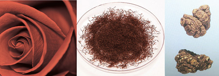 Ingredients: Rose (30g), saffron (30g), dang gui (angelica) (50g), chuan xiong (hemlock parsley) (30g), cassia twig (30g), artemisia leaf (50g)