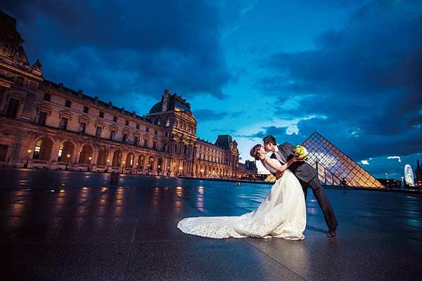 The newlyweds pose in Paris (left). Photo provided to Shanghai Star