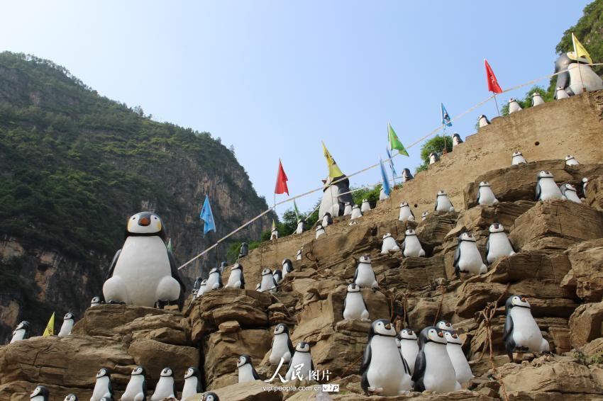 On June 2, more than 1,000 cute penguins make debut at the scenic spot of Small Three Gorges in Wushan county, Chongqing municipality. The move aims to attract more tourists. (People.com.cn/Photo)