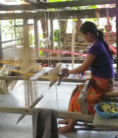 A woman works on looms at Lao Textiles Natural Dyes.Photo by Rebecca Lo / For China Daily