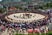 A child dances at the Maigaiti Dolan Culture Square in Maigaiti County, northwest China's Xingjiang Uygur Autonomous Region, June 29, 2014. Maigaiti County, known as the "home of Dolan", has taken measures to protect and inherit the world intangible cultural heritage "Dolan Muqam" since April 2012. [Photo/Xinhua]