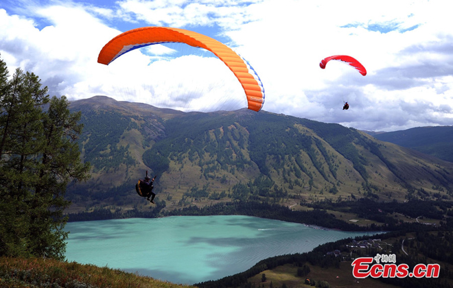 2. Kanas Lake is located in the Altay Prefecture of Xinjiang Uygur autonomous region. The lake sits in a valley in the Altai Mountains, near the very northern tip of Xinjiang, and the province borders with Kazakhstan, Mongolia, and Russia. The lake was formed around 200,000 years ago during the Quaternary period as a result of glacier movement. The local tourism information office compares Lake Kanas, which is located at around 48°N, with Lake Léman (the Genève Lake) in Switzerland and France (46°N), due to similarities in climate and scenery. [Photo/China News Service]