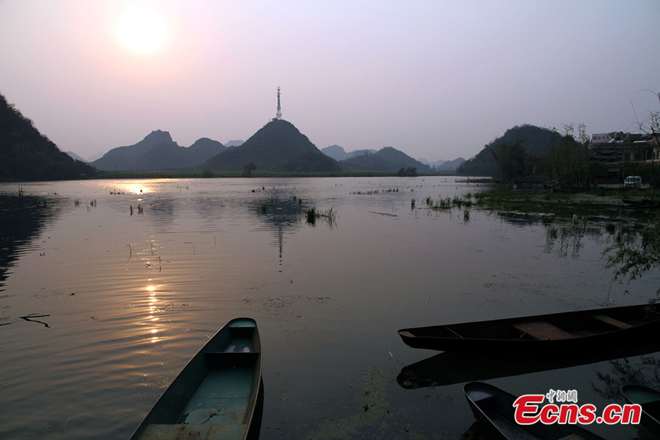 3. Puzhehei Located in northwest Qiubei county, Zhuang-miao autonomous prefecture in Wenshan, Yunnan province, Puzhehei is a scenic spot with many places for camping among areas surrounded by big lakes which are very popular with visitors. Its beauty lies not only in its natural landscape such as karst lakes, peaks and canyon views, but also in man-made features such as ancient rock paintings, revolution commemorations and unique ethnic customs. [Photo/China News Service]
